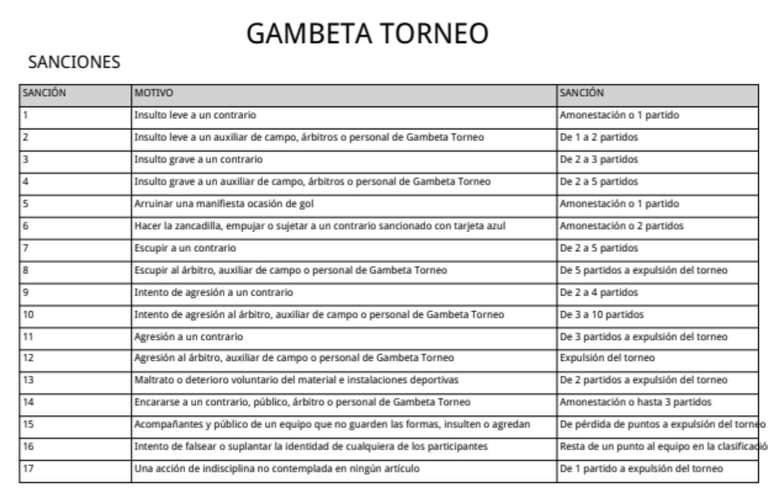 • Tanto en la victoria como en la derrota, se deben aceptar las reglas y el espíritu deportivo de GAMBETA TORNEO.